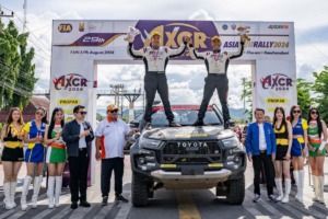 2024年のアジアクロスカントリーラリー(AXCR)は、レグ1となる8月12日(月)、最初の競技ステージとなるセレクティブセクション(SS)1の走行が行われ、三菱から技術支援を受けるチーム三菱ラリーアートは、2022年覇者のチャヤポン・ヨーターが3番手につけた。チームからエントリーする三菱トライトンは、田口勝彦を含め4台すべてがステージを走り切っている。