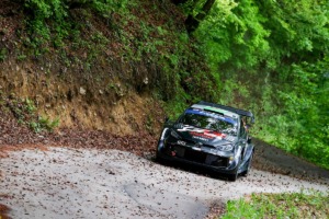 この日最初のSS13、雨は降っていないものの路面は湿っており、標高が上がるにつれて霧も出てくるというコンディション。ここでは前日リタイアを喫した先頭スタートのオジエがベストタイムをマーク。後方スタートで路面状況が悪くなることもあり、手堅く走った上位陣に対し、スーパーサンデーのポイントを獲得すべく果敢な走りを見せた。続くSS14はパワーステージとしても使われる8.78km。路面コンディションはSS13と同様、さらに霧が出ており視界は良くない。オジエはここでも一番時計をマークする力強い走りで着実にマージンを稼ぎ出していく。