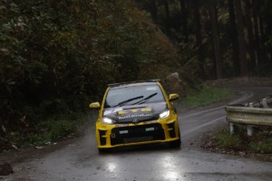 SS1、MORIZO Challenge Cup(MCC)に参戦する最上佳樹/前川富哉(GRヤリス)がスタートから200m地点でコースオフを喫して、レグ離脱。最初のセクションを終えて、SS1でベストタイムをマークした石川が、MCCの山田啓介/藤井俊樹に6.6秒差をつけてリードした。三枝は36.0秒差のクラス5番手と大きく出遅れてしまう。しかし、午後に入ると、SS4で山田が2本のタイヤをパンクし、大きくポジションダウン。これで小泉敏志/村山朋香(GRヤリス)が2番手に浮上。さらにクラス4番手につけていたMCCの貝原聖也/藤沢繁利(GRヤリス)もこのステージでスローパンクを喫してタイムをロス。これにより、三枝も3番手まで順位を上げた。石川は4回のベストタイムを刻み、2番手の小泉に25.6秒差をつけて初日首位。SS6で三枝をかわした泉陽介/石田一輝(三菱ランサーエボリューションⅩ)が3番手につけている。