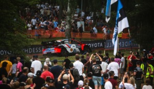 WRC第8戦ラリーエストニア(グラベル)は7月17日、タルトゥでSS1が行われ、トヨタはエルフィン・エバンス/スコット・マーティンが0.5秒差の2番手タイムで滑り出した。カッレ・ロバンペラ/ヨンネ・ハルットゥネンは4番手、勝田貴元/アーロン・ジョンストンは1.4秒差の6番手。初めてトヨタGRヤリス・ラリー1で参戦するオリバー・ソルベルグ/エリオット・エドモンドソンは7番手タイムで続いた。TGR-WRT2からサミ・パヤリ/マルコ・サルミネンは2.5秒差の10番手タイムだった。