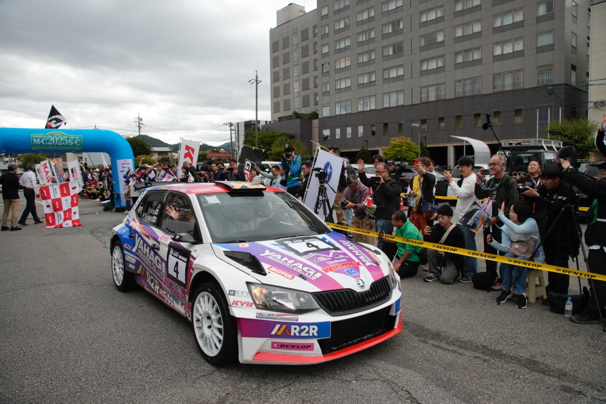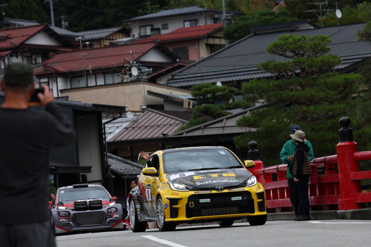 全日本ラリー選手権最終戦ラリーハイランドマスターズ(岐阜県、ターマック)は競技初日となる10月18日(土)、高山市位山交流広場駐車場に設置されたサービスパークをスタート。高山市役所で行われたセレモニアルスタートでは、高山南ジュニアウインドアンサンブルによる演奏と多くのファンから見送りを受けた。今年も、ラリー車両が高山市の観光名所である治橋、中橋、高山陣屋など高山市らしい風情ある景色のなかをリエゾンで通過。その後、ラリー最初の競技セクションへと向かっていった。