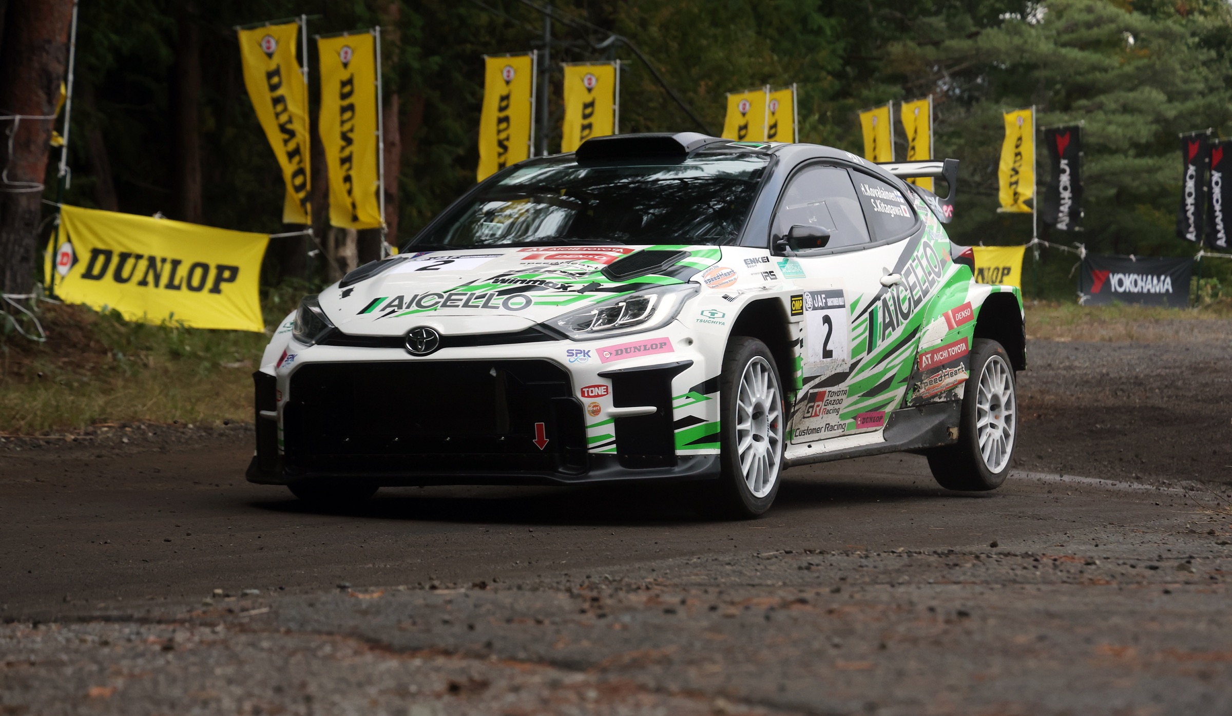 2025年シーズン全日本ラリー選手権第8戦「第52回M.C.S.C.ラリーハイランドマスターズ2025 supported by カヤバ」の初日は、10月18日(土)に6カ所のスペシャルステージを走行。トップカテゴリーのJN-1クラスは、ヘイキ・コバライネン/北川紗衣(トヨタGRヤリス・ラリー2)が、勝田範彦/保井隆宏(トヨタGRヤリス・ラリー2)に24.9秒差をつけて初日トップに立った。43.5秒差の3番手には鎌田卓麻/松本優一(シュコダ・ファビアR5)がつけている。