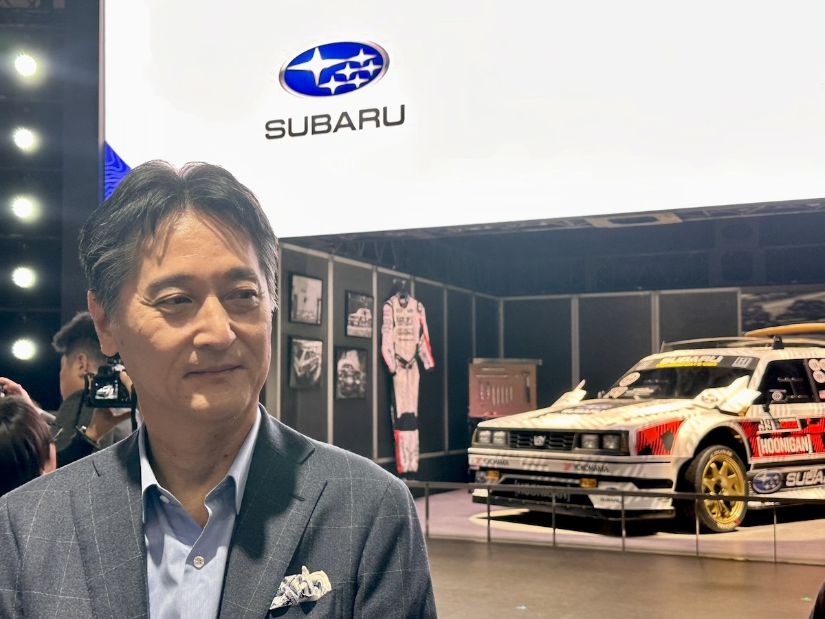 「レオーネは、初代レガシィよりも古い、スバルの原点とも言えるクルマです。自分がスバルに入社して最初に買ったクルマが、このレオーネ。時を経て、レオーネは米国で、クールな存在としてリスペクトされるようになり、モータースポーツチームが創造的なアップデートを融合し、新たな熱狂と共感が広がっています。その象徴が、ファミリー・ハックスター。グローバルで時代を超える象徴的なクルマとして、スバルを愛してくださっている日本のみなさまにこそ見ていただこうと、今回展示に至りました」と経緯を説明した。