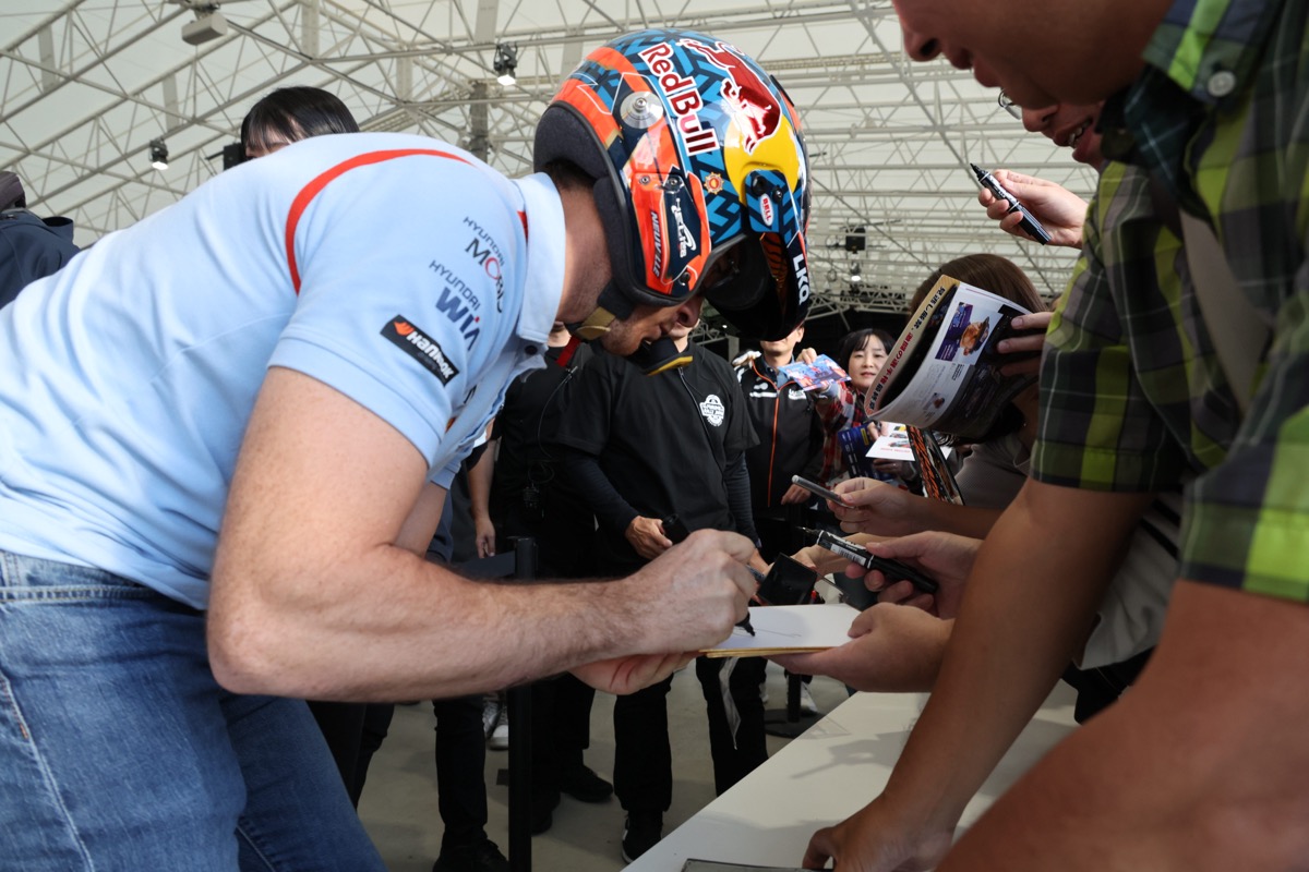カート大会の後に行われたパーティでは、WRCドライバーとラリーファンの交流タイムが展開。思い思いのアイテムにサインをもらったり、写真を撮ったりと、ひとときの時間を楽しんだ。