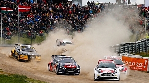 SFレース1のセカンドロウに並ぶのは、デイビー・ジャネイとセバスチャン・ローブという、いずれもプジョー208を駆るフランス人勢。3列目にはプライベートエントリーのロビン・ラールソン(アウディA1)と、ケン・ブロックのチームメイト、アンドレアス・バックラッド(フォード・フォーカスRS)だ。2連覇王者で選手権リーダーのペター・ソルベルグは、Q1とQ2でデファレンシャルトラブルに見舞われ苦しい滑り出し。Q3ではベストタイムをたたき出したが、Q4ではローブと接触する場面がありサスペンションを破損してリタイアとなった。中間リザルトでは全体の6位につけ、SFレース2をセカンドロウからスタートする。ともに並ぶのは、ケビン・ハンセン(プジョー208)。3列目にはライアム・ドーラン(BMW MINI)とケン・ブロック(フォード・フォーカスRS)が並ぶ。