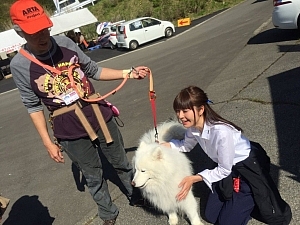 デイ2のSS9で首位を行く関根正人選手のシトロエンDS3 R3が止まったと聞いて、にわかに活気づくサービス会場、そしてラリプラブース。首位を快走する柳澤宏至選手と中原祥雅選手を最終SS13のフィニッシュ後にお出迎えするため、撮影用の綺麗なシャツに着替えたCUSCOレーシングのメカさんたちと一緒に、いそいそとパルクフェルメの入口へ向かったのでした。