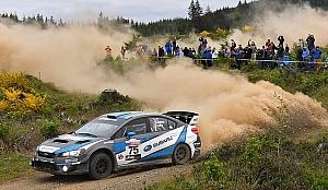 序盤首位に立ったのは、ヒギンズと同じスバル・ラリーチームUSAのチームメイト、トラビス・パストラーナ。2日に設定された4本のステージすべてをベストタイムで揃え、2番手に36秒差をつけてこの日を折り返した。一方のヒギンズは、序盤ターボのトラブルに見舞われ、リエゾンモードの走行を強いられ、この日はパストラーナに1分以上遅れての3番手にとどまった。しかし、2日目に入ると、パストラーナは木が立ち並ぶ高速ステージを思うように攻められない。「何度もコースオフしそうになった。コースオフとタイムをロスするラインの差が、紙一重。アクセルを緩めるか、ブレーキに触るだけで1秒の差がつく。本当に怖いラリーだ」と語るパストラーナは、これまでこのラリーを制した経験がない。