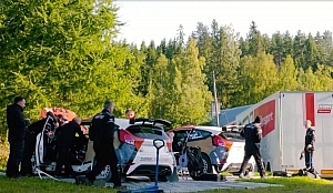 動画は会場周辺の空撮風景から始まり、レグ1のトップ3の選手の走りを中心に展開。途中クラッシュで炎上したシュコダ・ファビアR5の消火へ向かう消防車や、ナイトセクションに入りパンクしたために火花を散らしながら走行するフォード・フィエスタR5など、この日に起きた数々のドラマが収録されている。