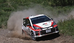 JN5クラスは小濱勇希/草加浩平(シトロエンDS3 R3-MAX)と横嶋良/木村祐介(プジョー208 R2)の一騎打ちに。リードする小濱は「午前中よりも午後の方が、マシンやタイヤをコントロールする自信を持ってドライブできました。競っているライバルもいるので、しっかり走って、トップで帰ってきたいです」とコメント。追いかける横嶋は、昼のサービスでセッティングを変更。「セッティングを変えてもらって、かなり走りやすくなりました。しっかり走って、小濱選手との差を逆転できるように頑張ります」と意気込みを語っている。ヴィッツGRMNラリーの眞貝知志/安藤裕一は、SS4でマシントラブルによりレグ離脱。車両を修復して2日目の出走を目指す。