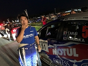 「北海道は長いですね、お腹が空きました(笑)。この陸別はラリースクールでもホームコースですからね。そもそもランサーに向いているコースなんでしょうね。午後はヤムワッカで新井選手、というかスバル勢が速いので、なんとかタイムを上げたいですね」