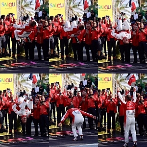 4位以上でチャンピオン確定だった新井敏弘選手は、鎌田卓麻選手がリタイアした後トップを守りきり、今季5勝目と共にシリーズチャンピオンも獲得しました。