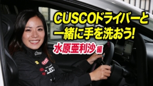 今回はTRDラリーカップに参戦するCUSCO RACINGドライバー今橋彩佳が手洗いをレクチャーする。モータースポーツの用語で説明したり、手洗い時間の目安として替え歌を歌いながら洗ったりする動画となっている。