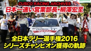 クスコ・レーシング、2019年全日本ラリー選手権総集編 前編を公開 RALLY PLUS · 2020-06-05 クスコ・レーシングは、全日本ラリー選手権の2019年シーズンをまとめた総集編動画の前編を公開した。 この前編では第1戦嬬恋から第5戦モントレーまでを収録。全日本ラリー選手権にエントリーする車両以外にも、JSRやアジア・パシフィックラリー選手権併催イベントに参戦するマイケル・ヤングのCUSCO YARIS 4WD、JSRの青山康のスバルWRX STIも収録されているする。