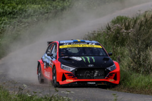 エストニアでは、勝田のコ・ドライバー、ダニエル・バリットがジャンプの着地の際の強打によって背中を負傷。次のベルギーでは治療のために欠場し、勝田はキートン・ウィリアムズと組んでの参戦となっていた。
