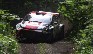 SS1でベストタイムをマークしたのは、グラベルに向けて入念なテストをこなして挑んだ勝田。最大のライバルであるコバライネンの不在もあり、勝田は午前中に行われた3SS すべてでベストタイムを記録する。クラス2番手につける福永はSS2で右フロントタイヤをバーストし、さらにコバライネンの脱落により先頭スタートを強いられてペースも上げられず、午前中だけで勝田に51.9秒もの大差をつけられてしまった。